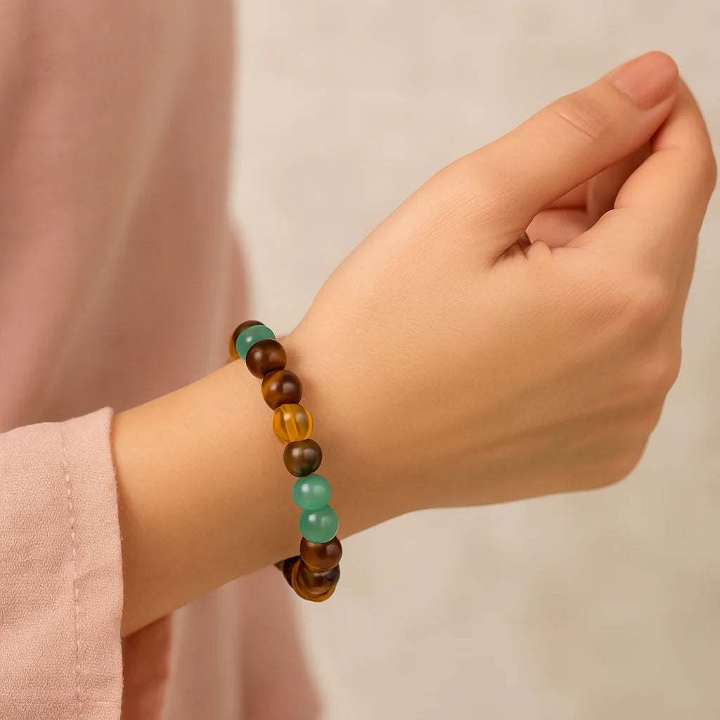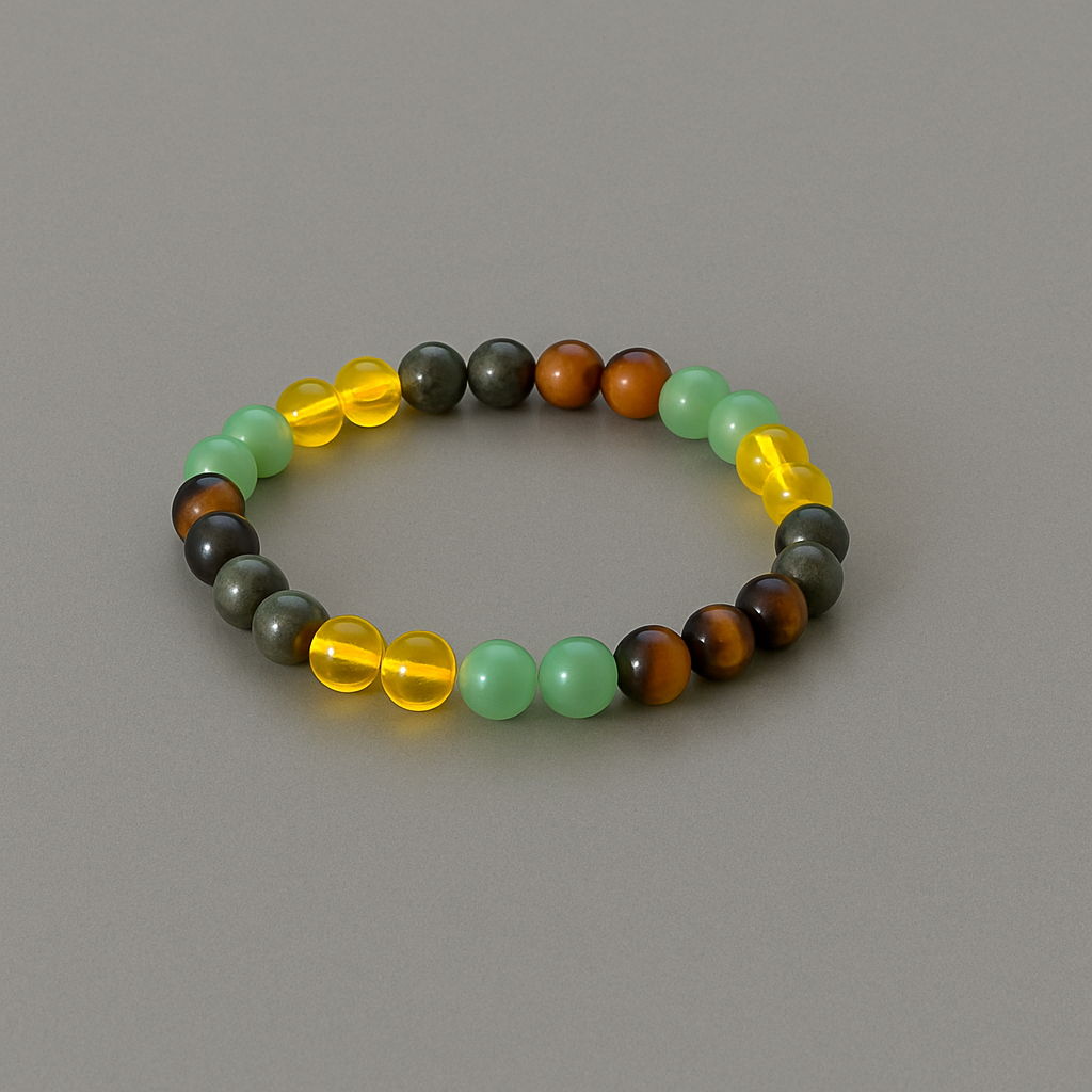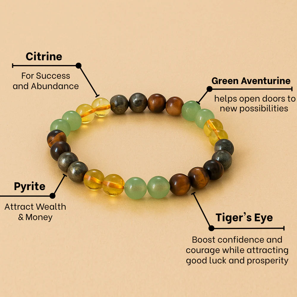 The Money Magnet Bracelet is a powerful combination of four prosperity-enhancing gemstones â Tigerâs Eye, Pyrite, Citrine, and Green Aventurine. Each stone is chosen for its unique energy to attract wealth, amplify motivation, and balance your emotions while adding a touch of elegance to your look.